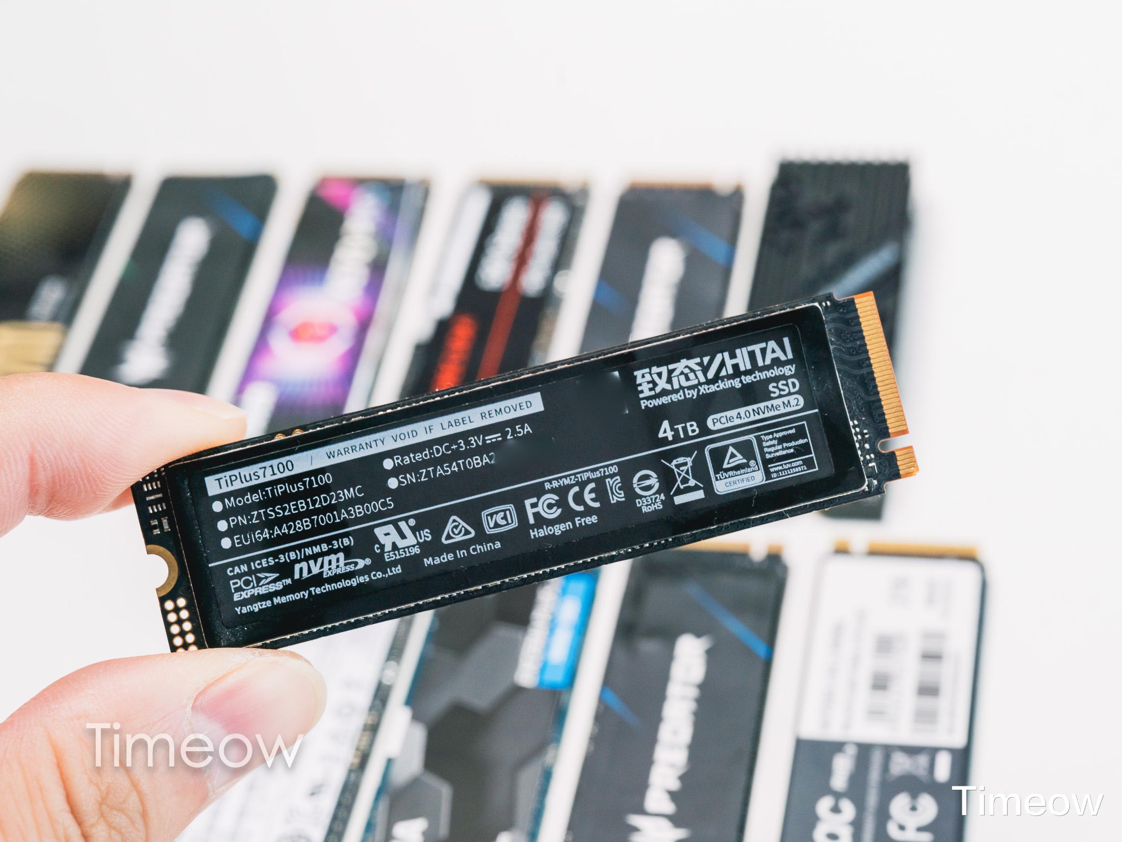 致态TiPlus7100,用的是长存自家的xtacking TLC颗粒。这根是我用在主力台式机上的,由于性能很稳定,所以平时往里塞游戏,评测其他电脑时会拔下来直接插到别的电脑上,用的也比较狠。