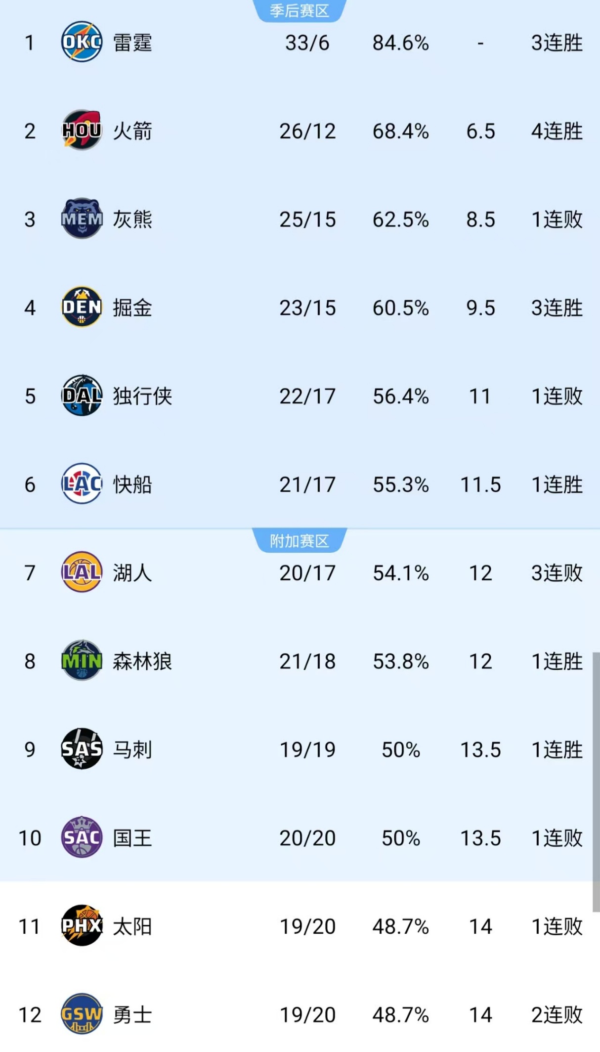 NBA西部排名更新,除了榜首雷霆非常稳,还有三支球队稳定性,肉眼可见提升,后半程发力的感觉。火箭的西部第二,是越坐越稳,原来还被质疑会掉队,但现实是赢了很多硬仗,攻防强度极为出色。掘金则是在近期全面复苏,如果穆雷再能找回状态,管理层稍微配个三分射手,掘金立马回争冠集团。快船的稳定,是很少连续断电,有哈登在就能托底,西部4-6名的区间,快船直通季后赛概率最大。
