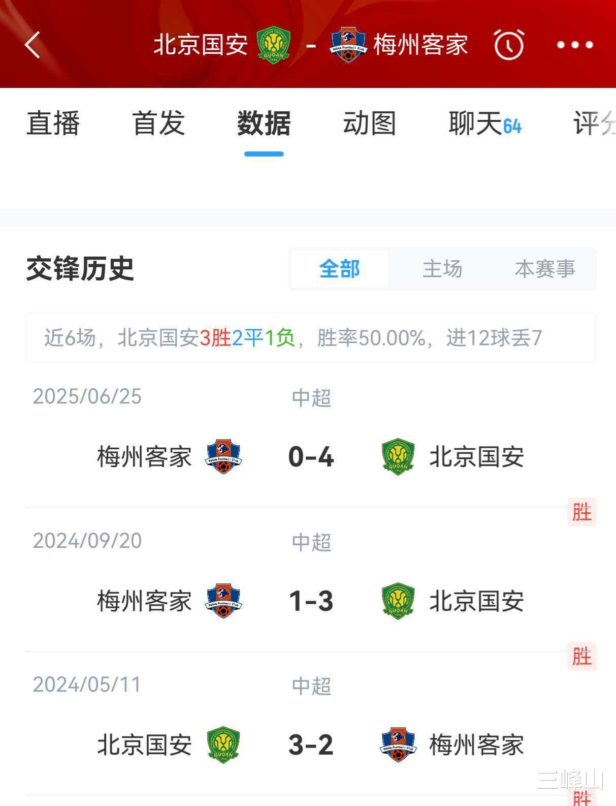 2024、2025两个赛季,梅州和北京有三场比赛,梅州3负0胜,最后一场有压力。北京近期战绩不佳,最后一轮主场作战,相信不会轻易放弃。本赛季第29轮,客场4:0战胜长春亚泰,让亚泰降级。