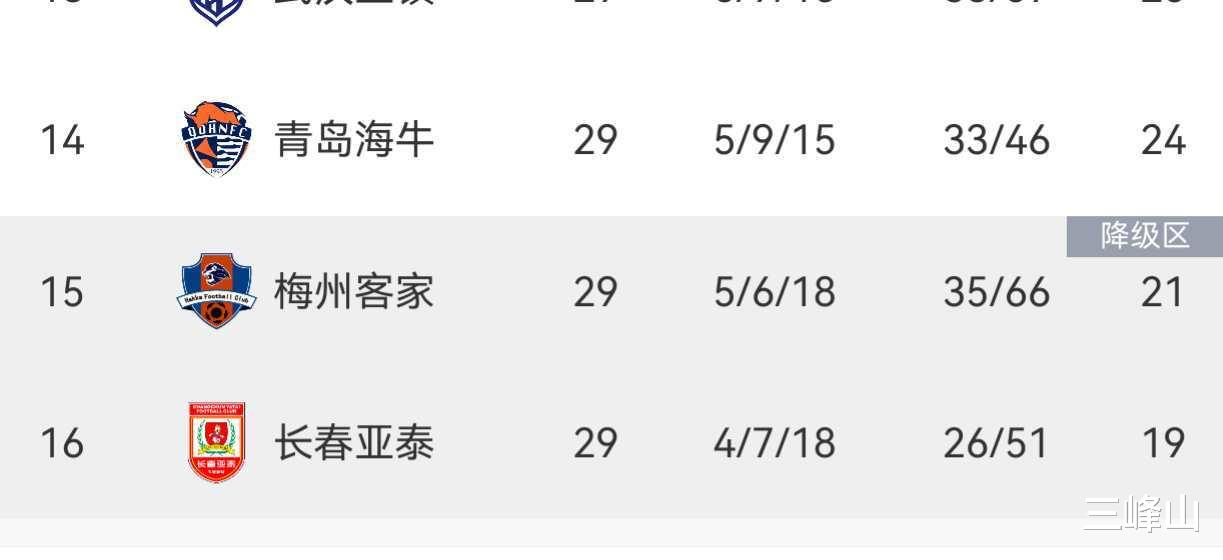 3、如梅州客场输北京,积分21分。青岛无论什么赛果,都将保级。梅州降级;