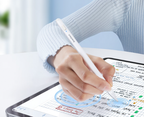 这款电容笔支持磁吸充电功能,随手放上iPad就能充电,还可以实时查看剩余电量,使用起来比较省心,而且续航也还可以,拥有10小时的连续使用时长,足够我们用上一天。书写体验上也表现不错,笔尖采用了pom材质,还搭载有倾斜压感功能,书写顺滑,线条粗细还会随角度变化,体验感不错。更值得一提的是,它支持PPT隔空翻页功能,轻按笔身即可快速翻页,轻松驾驭不同场合!不过这款电容笔的价格偏高,适合预算比较充足的朋友去考虑!