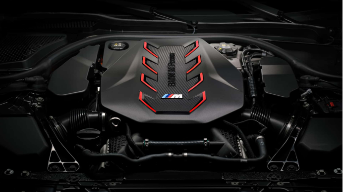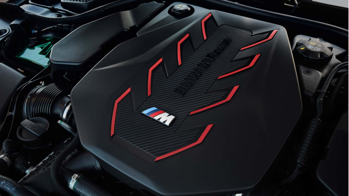 作为一台民用车改造而来的M Power高性能轿车,新M5的动力配置同样有较大变动,其搭载了和内部代号为G09的XM同款的插电式混动动力单元,这也让新M5成为有史以来第一台采用了混动动力单元的M5。这套混动单元的发动机本体是代号为S68的4.4L双涡轮增压V8发动机,该发动机的准确排量为4395cc,缸径和冲程为89x88.3mm,压缩比为10.5,发动机的中缸和气缸盖均采用铝制。加上混动单元(电机被集成在变速箱当中),这套动力系统的最大扭矩为1000牛米,最大马力为717匹,和XM Label Red版本的扭矩输出相同,马力输出则低了21匹。混动单元的电池组容量为14.8千瓦时,纯电续航里程约为40公里,搭配的变速箱为由ZF提供的8速M Steptronic自动档变速箱。