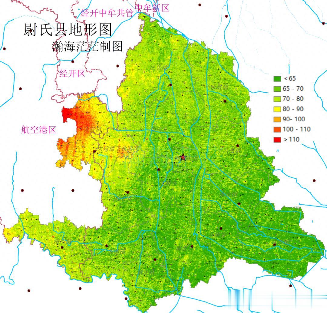尉氏县海拔地形图如下: