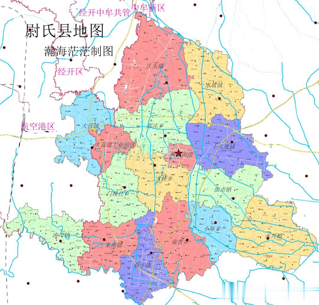 接着,我们来看下尉氏县的乡镇情况。