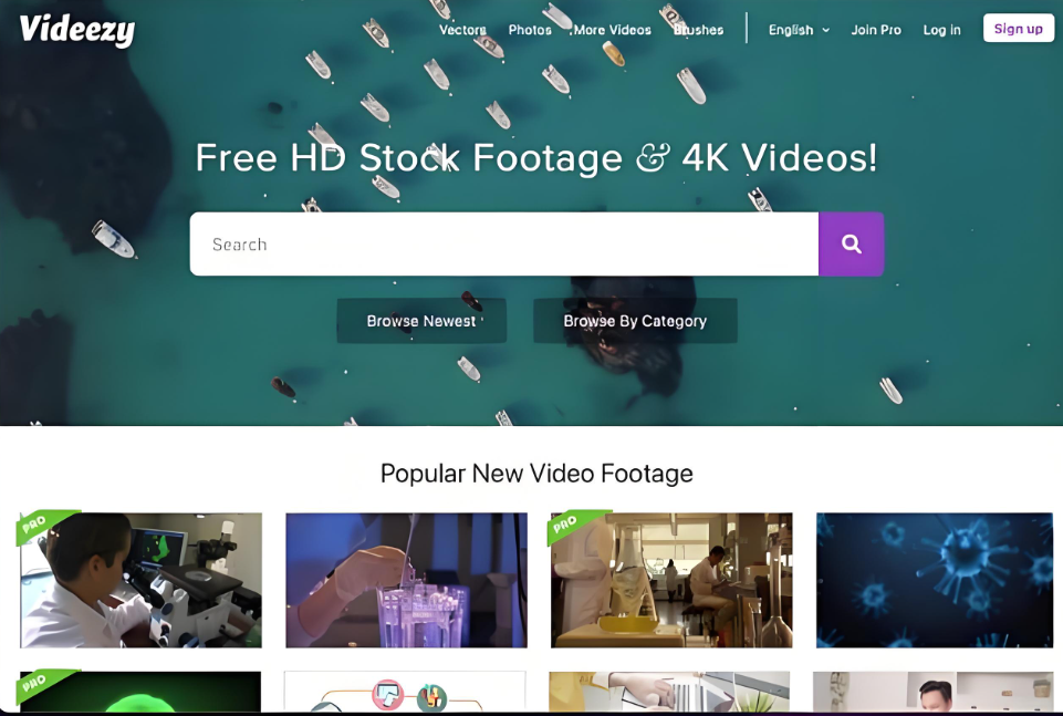 Videezy 以分享高质量免费视频素材为主(部分需注明出处),同时也有优质付费素材可供选择。其航拍视频素材由专业摄影师贡献,视角独特、画面精美。