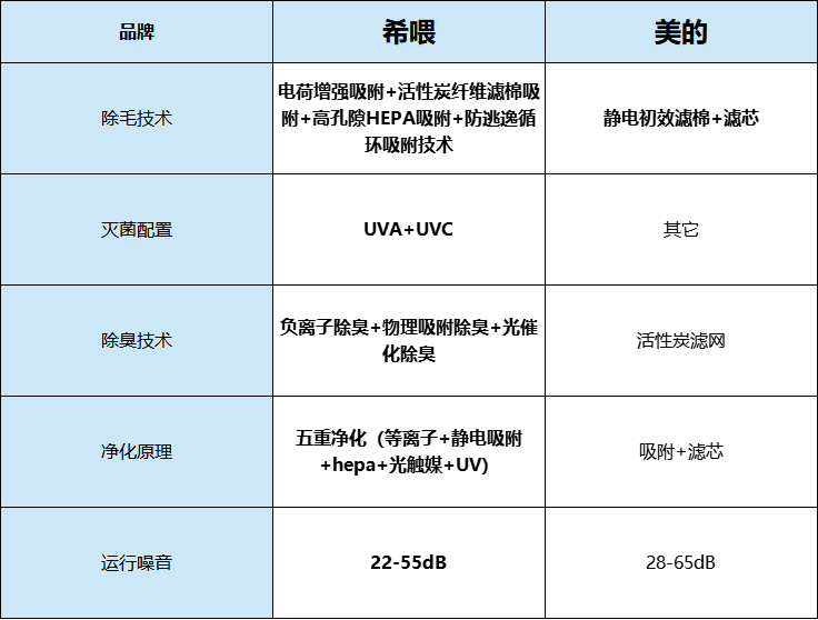 说白了,希喂和美的都属于靠谱的宠物空气净化器,但定位不同。