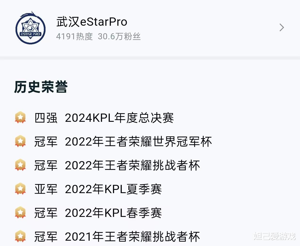 最近两年,成都AG独霸联盟,但当我们将视野拉回到21年至22年间,当时的武汉eStar是联盟独一档的存在,从21年KPL秋季赛开始,一直到22年世界冠军杯,期间ES拿到了五个冠军+一个亚军,可由于版本变更+选手状态起伏,自22年世冠夺冠后,ES就没什么声音了,哪怕在这期间ES也曾尝试过对首发进行调整,可惜效果仍旧不佳。