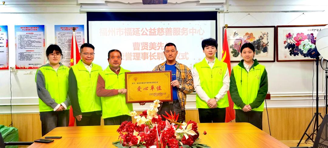 11月4日下午,福州市福延公益慈善服务中心内暖意融融,一场承载着爱心与责任的聘任授牌仪式在此举行。福建省康洁环保科技有限公司创始人、董事长曹贤美先生正式接过聘书,成为福延公益荣誉理事长,以实际行动为公益事业注入新动能。