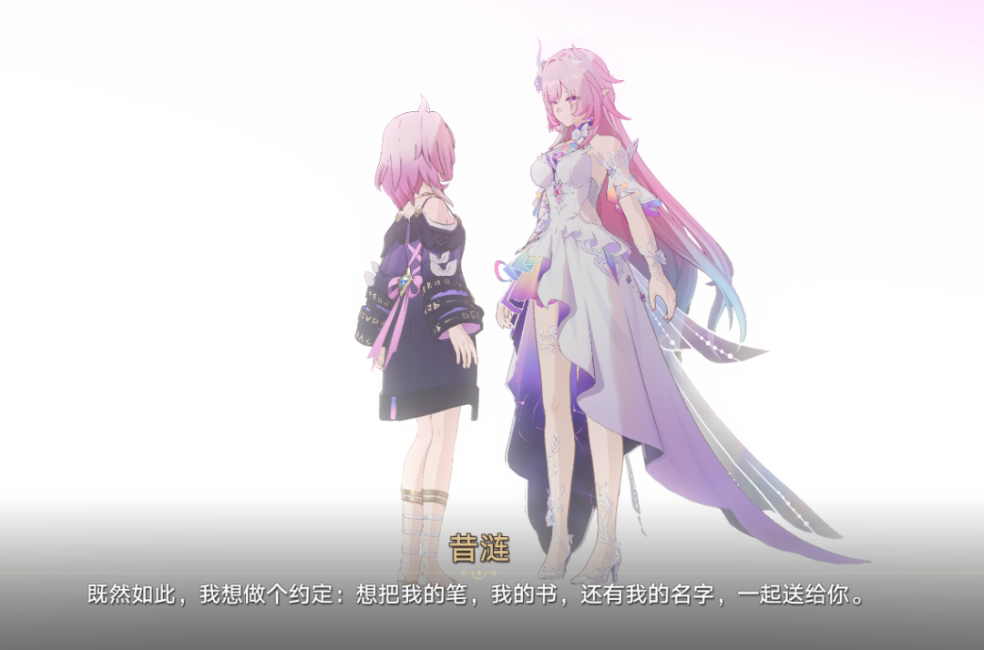 作为玩家,在过剧情的时候能感受到制作组想要借昔涟传达“神爱世人”,从她的自我奉献和坚守凸显其神性,又从琐碎的片段和娇俏性格里展现人性,总之是一个可爱又让人忍不住怜爱的角色形象。作为崩铁IP高人气角色爱莉希雅的同位体,“爱”这个关键字眼也是二者间的关联证据,对老玩家来说更有情怀加持。