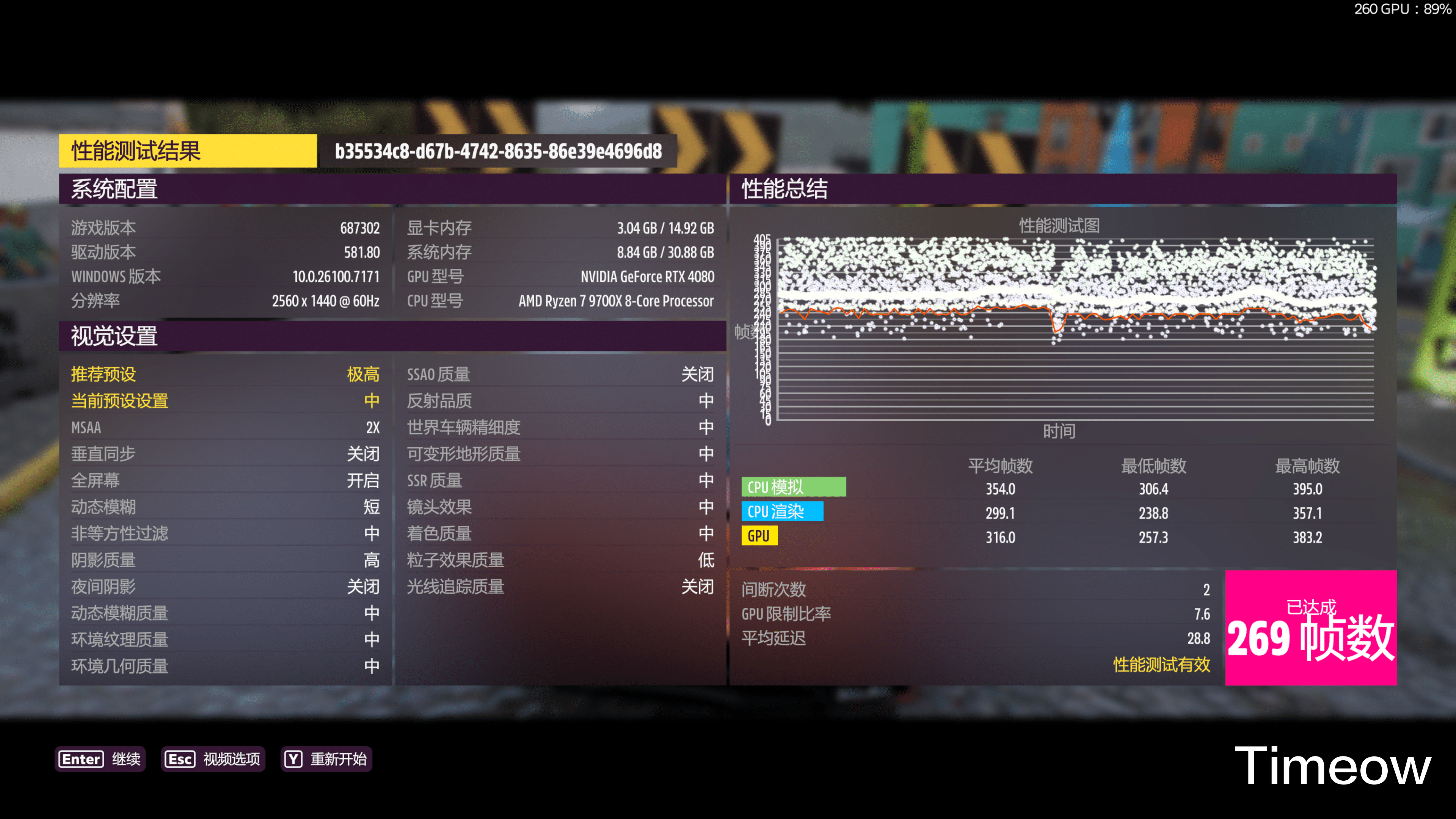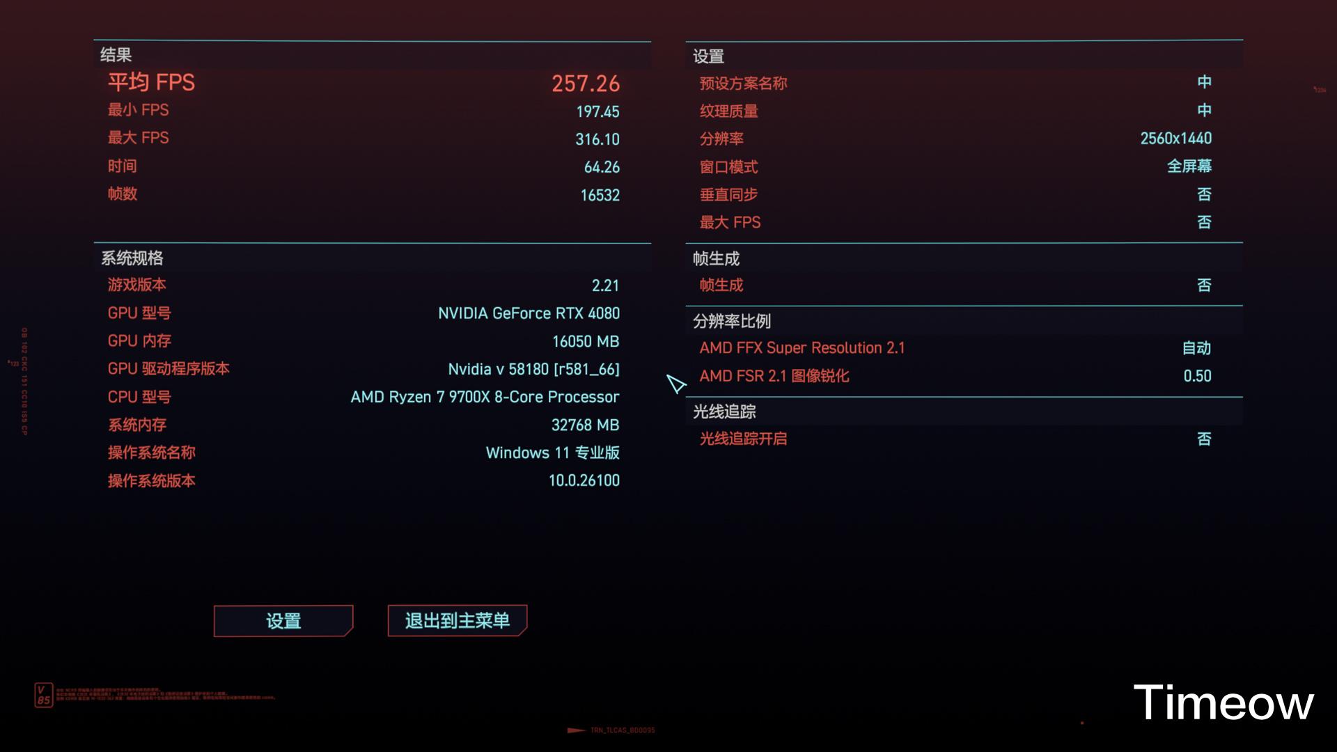 《赛博朋克2077》中,平均帧257,最低帧197,提升幅度也有个20%左右。
