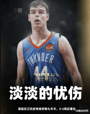 美记者爆料,雷霆后卫托皮奇接受了睾丸手术,大约4-6周后重新评估。