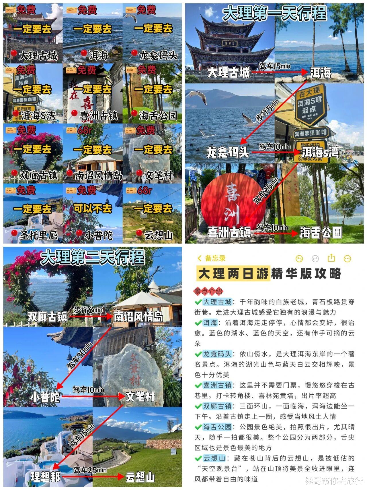 ✅住宿建议:可选择住在大理古城内的客栈,或洱海边的海景民宿,感受不同的氛围。