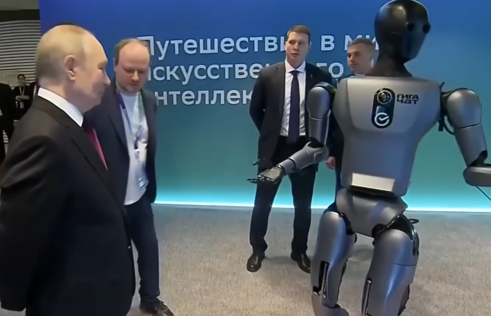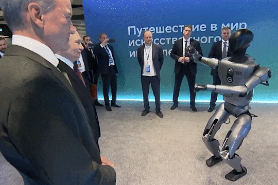 但业内人士很快发现,机器人全程仅执行预设程序,未展现交互能力;更重要的是,格林并未表现出比爱豆更可靠的行走能力——因为它压根没走,跳舞时一直站在原地。最搞笑的是,当格林开始跳舞时,现场主管似乎极为担心它会失控或摔倒砸到普京,犹豫几秒后,他还是在面子和性命间选择了保命,直接请普京后退,以免自己变成“刺客”。