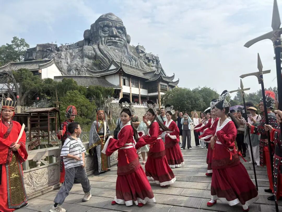双节期间,太湖县文旅消费市场活力迸发,核心景区成为消费主要目的地,五千年文博园、花亭湖两大4A级景区人气爆棚,以业态创新为突破口,不断丰富文旅产品供给,五千年文博园推出“国风雅趣游园会”,上演汉礼、小场景演艺、银票互动体验、主题夜游等沉浸式游园。花亭湖景区推出“乐活山水畅玩周”,“重走长征路”主题活动、竹编、植物拓染等手作体验备受推崇。蔡畈古民居、龙潭古寨等景区均推出书法赠祝福、黄梅戏点唱等优秀传统文化体验活动。