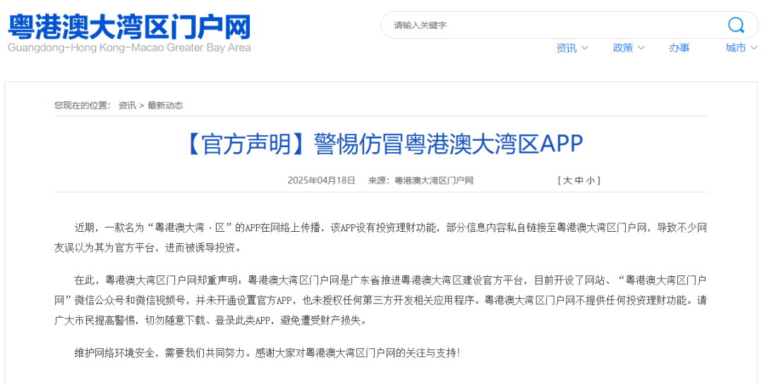 真相:工信部反诈专班已发布预警,香港特区政府粤港澳大湾区官网也明确声明“没有投资理财APP”。