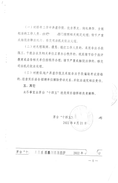 “十四五” 征地(2022-2023 年)同一技改项目再次征地,此次征收太平村 3000 余亩土地,却完全背离法定程序:未发布征地公告、未召开听证会,仁怀市国土资源局与村民签订的补偿协议中,“社会保障安置用工” 仅为空白承诺 —— 既无明确用工单位,也无具体安置方案,仅靠某茅 “十四五” 技改项目指挥部负责人口头表态 “能进酒厂上班”,无任何书面保障。