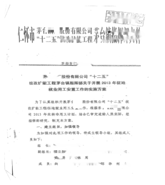 “十二五” 征地(2011 年起)某茅酒厂启动技改扩能项目,由仁怀市相关部门牵头征收中华村、太平村(原太坪村)7000 余亩耕地,补偿标准为 38600 元 / 亩。双方签订的《征地补偿协议书》中,明确约定 “用工安置” 条款;厂里市里还联合出台《永久性用工安置方案》,某茅 “用工安置指挥部” 与茅台镇相关部门更在 2015 年、2016 年两次发文,承诺 “2020 年底前将适龄村民全部安置完毕”。