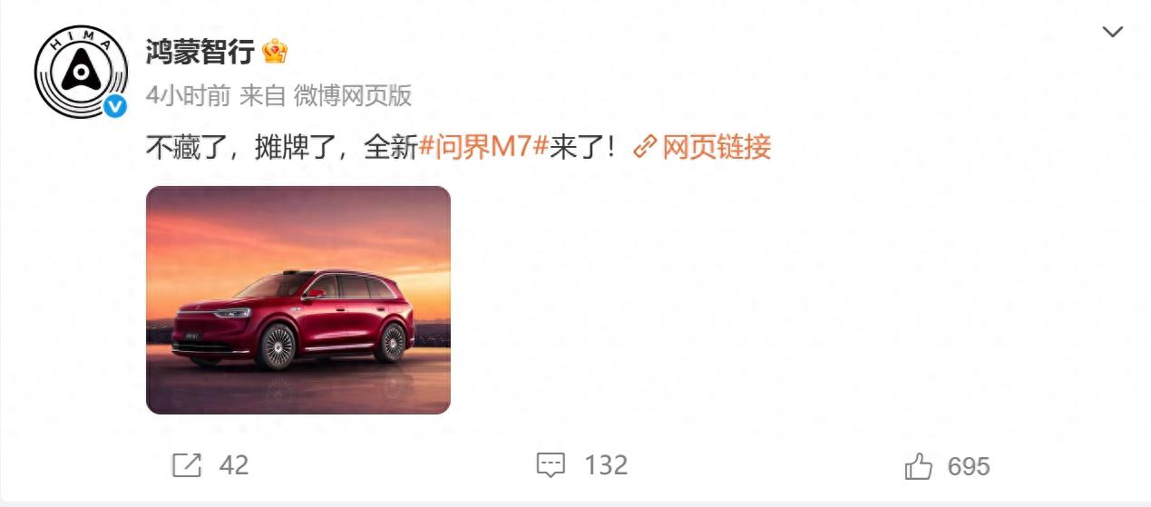 大家千呼万唤的全新问界M7,终于正式亮相了!这次不是网上瞎传的假图,是官方实打实公布的真车。就在昨天早上9点,鸿蒙智行的官方微博发了一组全新M7的照片,还配了句特别接地气的话:“不藏了,摊牌了,全新问界M7来了!”