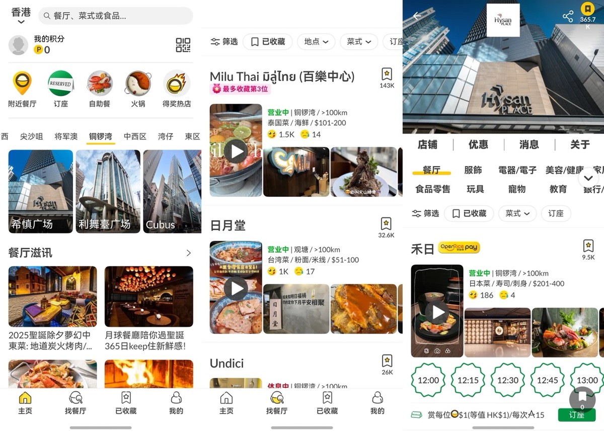 先说找吃的吧,填饱肚子是首要的!在香港,我基本就靠鸿蒙版OpenRice。想找本地人常去的茶餐厅和小馆子就来这,绝对不会坑你。在“找餐厅”页面上,餐厅名称、距离、好评和差评的具体数量、人均消费,这些参考信息可全乎得很,找到心仪餐厅分分钟的事。不只餐饮,还能查询指定商场内的服饰、电器/电子、美容/健康、家居生活等店铺,吃完饭顺道逛逛岂不是美死了!