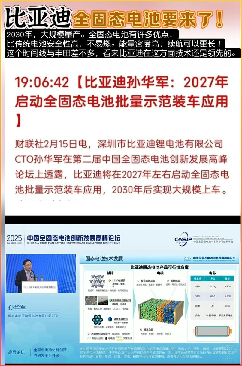 时间节点倒是挺明确. 2025年半固态开始小批量, 2027年全固态装车验证, 2030年规模量产. 这个进度... 我觉得还算靠谱吧.