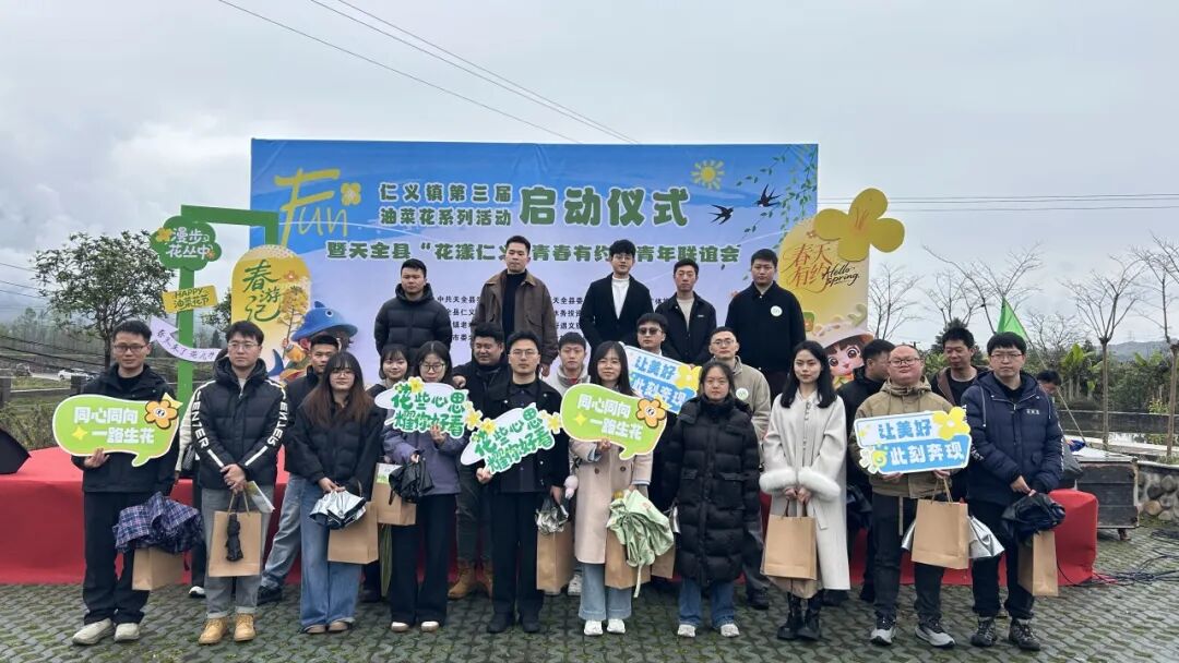 伴着早春的细雨,在“红色粮仓”浪漫的油菜花海间,3月18日,随着仁义镇第三届油菜花节的启幕,由团县委、仁义镇、雅职院等部门联合开展的青年联谊活动圆满开展,30余名青年人才齐聚,探索乡村韵味,参与文俗体验,在花香细雨间碰撞缘分火花。