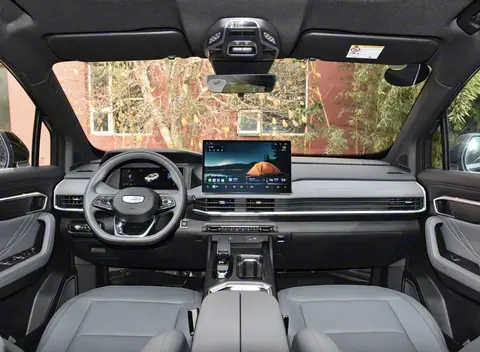 内饰的调整聚焦于舒适性与实用性提升,中控台采用对称式设计,12.3英寸悬浮式中控屏与10.25英寸全液晶仪表盘组成双联屏系统,车机搭载吉利最新的银河OS 4.0系统,支持语音交互、车联网与OTA升级,语音识别响应迅速,可实现空调、导航等功能的精准控制。空间布局是全新豪越L的核心优势,提供5座、6座以及7座车型可选,完美适配不同家庭结构。车内遍布26处储物空间,门板储物格、中央扶手箱等细节设计,让手机、水杯等小物件各得其所,实用性拉满。