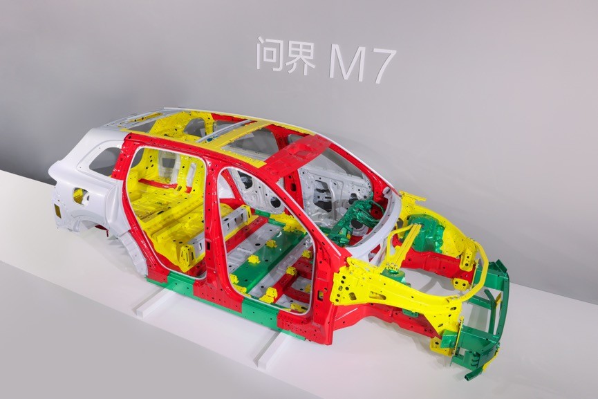 被动安全是家庭SUV的底线。问界M7白车身展示区显示,ABC柱采用34.5%高强度热成型钢,主要结构件83.7%高强度材料占比,构建起“钢筋铁骨”防护体系。此外,同级领先的107L后备箱暗格与纯电版145L前备箱,通过细节设计提升实用性。这种“看不见的安全”与“看得见的贴心”的结合,彰显了问界对家庭用户核心需求的精准把握