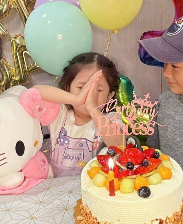 除了玩偶和气球吸睛外,钟嘉欣为女儿准备的生日蛋糕也成为一个亮点,虽然款式不算新颖,但是看到小家伙露出满意的表情,想来作为妈妈的钟嘉欣也是感到欣慰。