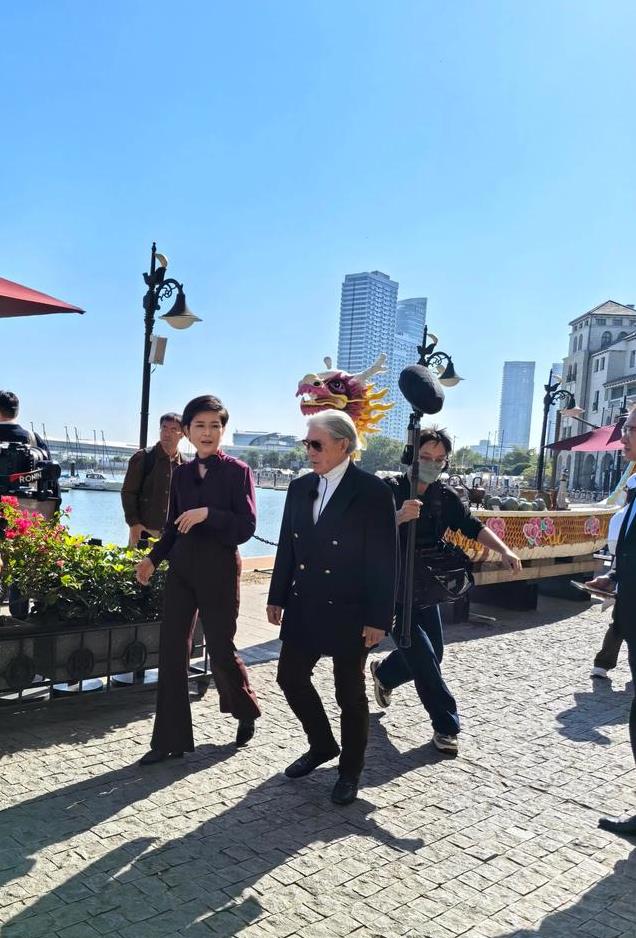 满头白发的霍震霆走在前面,他戴着墨镜很帅气,78岁的霍震霆步伐轻盈,他很健康精神。郭晶晶穿了一件黑色的新中式上衣,她穿了一双黑色的尖头高跟鞋,她优雅的走在霍震霆的身后。霍启山和霍启刚都穿着黑西装搭配白衬衣,他们笑着走在郭晶晶的身后。