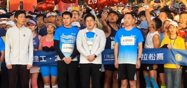 南沙马拉松比赛当天,霍震霆和霍启山在台上发令,霍启刚穿着运动服站在起跑线上,他们一家人都参与到了马拉松比赛中。