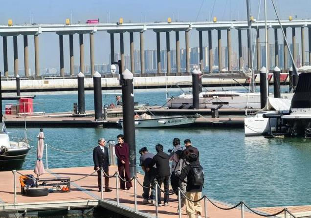 霍震霆来到南沙接受了央视主持人的采访,霍震霆穿了一条咖色的条绒裤子,碧海阳光下的霍震霆很有魅力,他侃侃而谈,他的谈吐和仪态都很好。