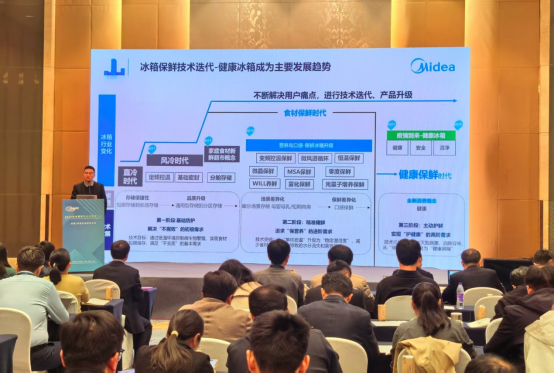 在消费升级和技术迭代双重作用下,健康冰箱成为主要发展趋势,合肥美的电冰箱有限公司专家张永飞提出了从“储鲜”到“护鲜”的5个维度冰箱健康净化技术升级趋势。例如在冰箱净化技术发展上,他提出微生物污染源广泛多样,针对不同食材场景、微生物污染种类,需要不断探索新型材料和技术。