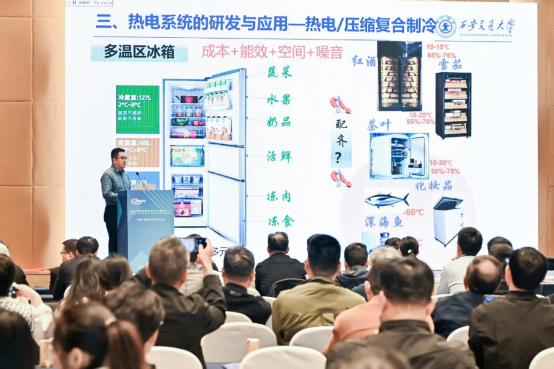 今年上半年,在2025年度美的冰箱全球创意创新大赛中,TEC智胜冰霜,即一种基于半导体制冷技术的高效冰箱除霜方案,在大赛中荣获一等奖。这也让半导体制冷技术浮出水面。此次冰箱/冷柜分会上,西安交通大学刘晔就介绍了其所在固态制冷实验室进行的多温区半导体制冷技术的研究应用进展。据介绍,目前这项技术已应用于航空机载-20℃半导体制冷运载箱、-15℃半导体冷冻展示柜、半导体制冷红酒柜等设备设计开发。