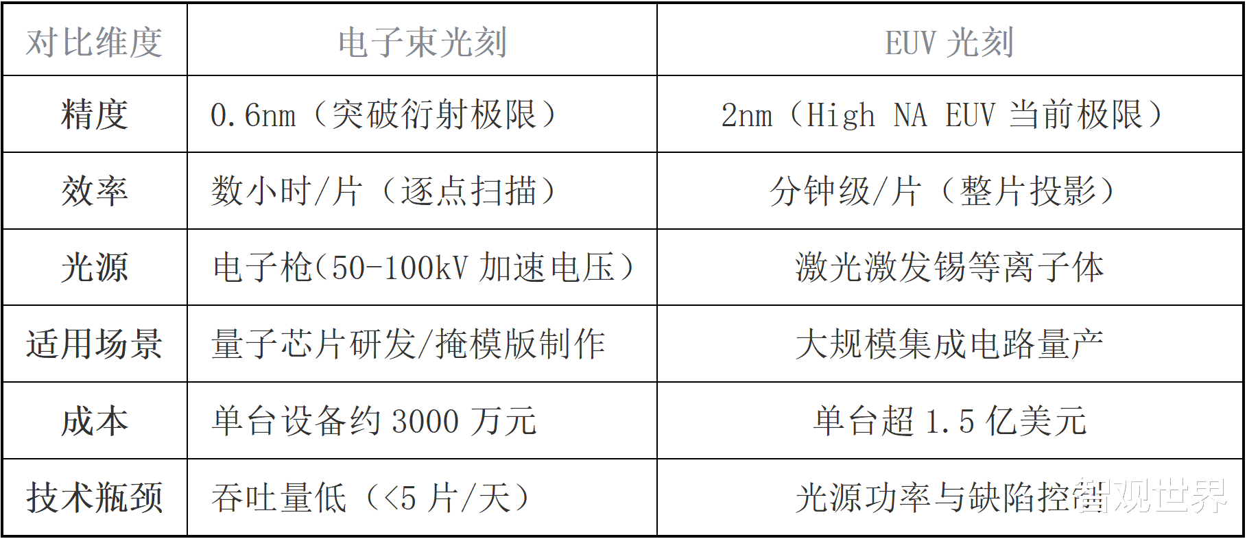 电子束光刻与EUV光刻关键参数对比
