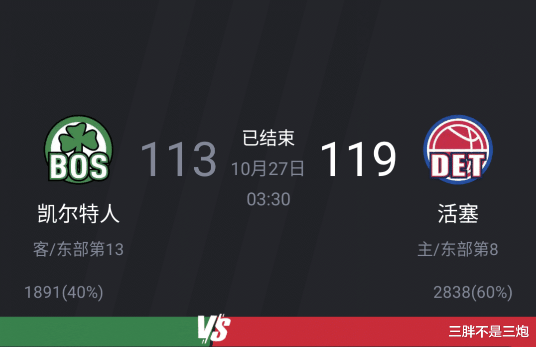 那么以上就是10月27日的所有NBA比赛情况及球员红黑榜的详细内容了,不知道各位对此有何见解呢?欢迎您在评论区讨论!只要理性客观,三胖随时恭候您的到来~~~