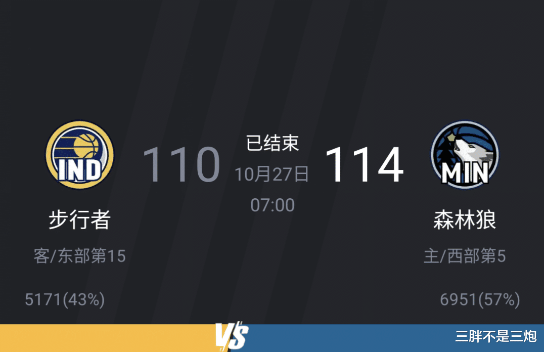 森林狼:全队114分、总命中率46.4% 、三分命中率30.3%