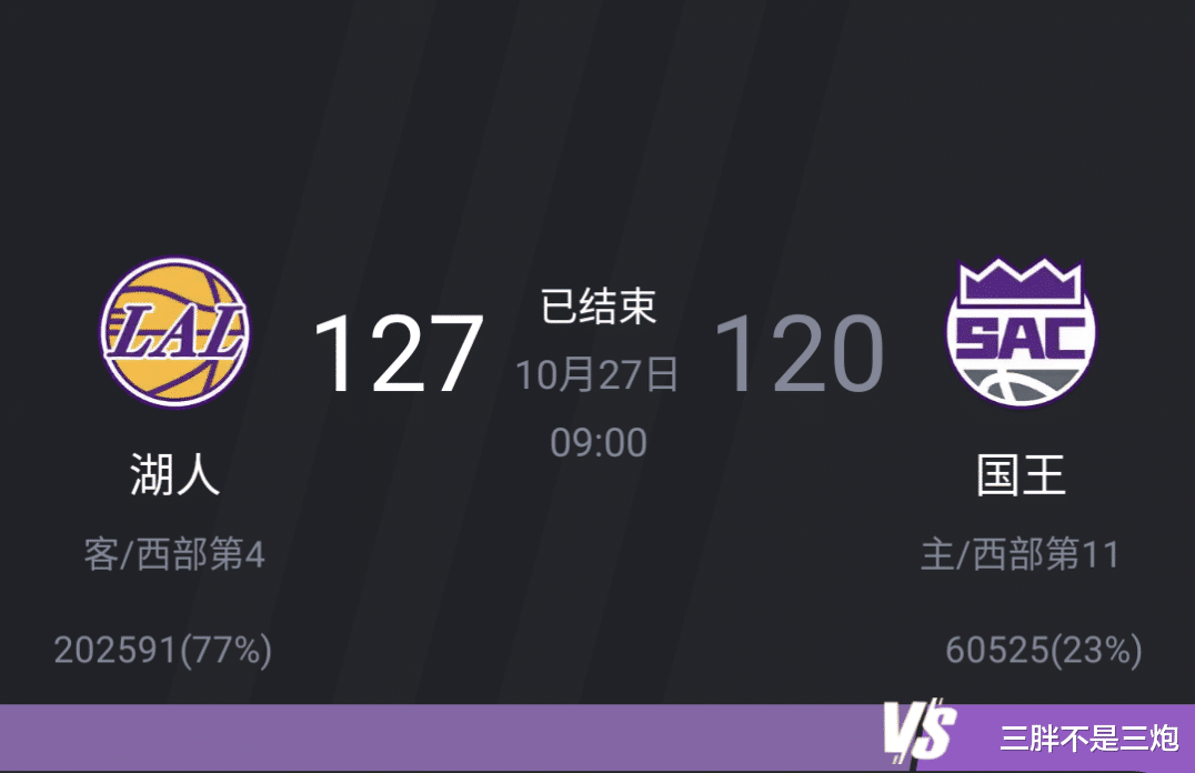国王:全队120分、总命中率44.6% 、三分命中率41.9%