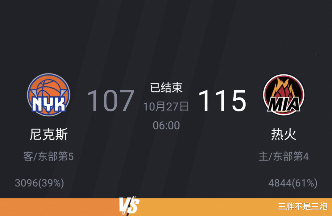 热火:全队115分、总命中率45.8% 、三分命中率35.1%