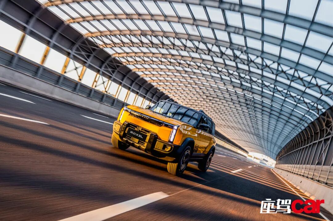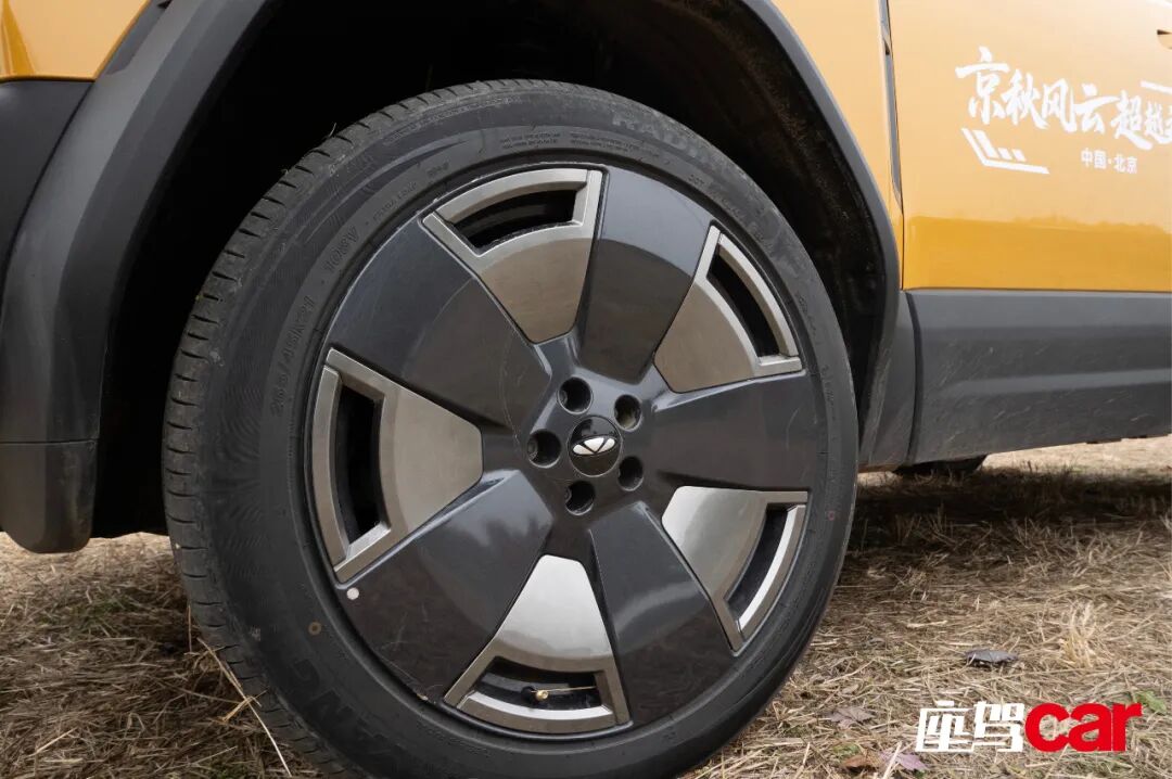 设计方面,新车采用当下流行的“方盒子”造型,整体线条平直方正,再加上双色拼的车身颜色,非常符合当下年轻人喜爱的户外潮酷造型。车身侧面,最为明显的是21吋同级最大轮胎,更是提升了品质感。另外,整车尺寸为4545x1950x1815mm,轴距2783mm,为车内的空间提供有利的保障。