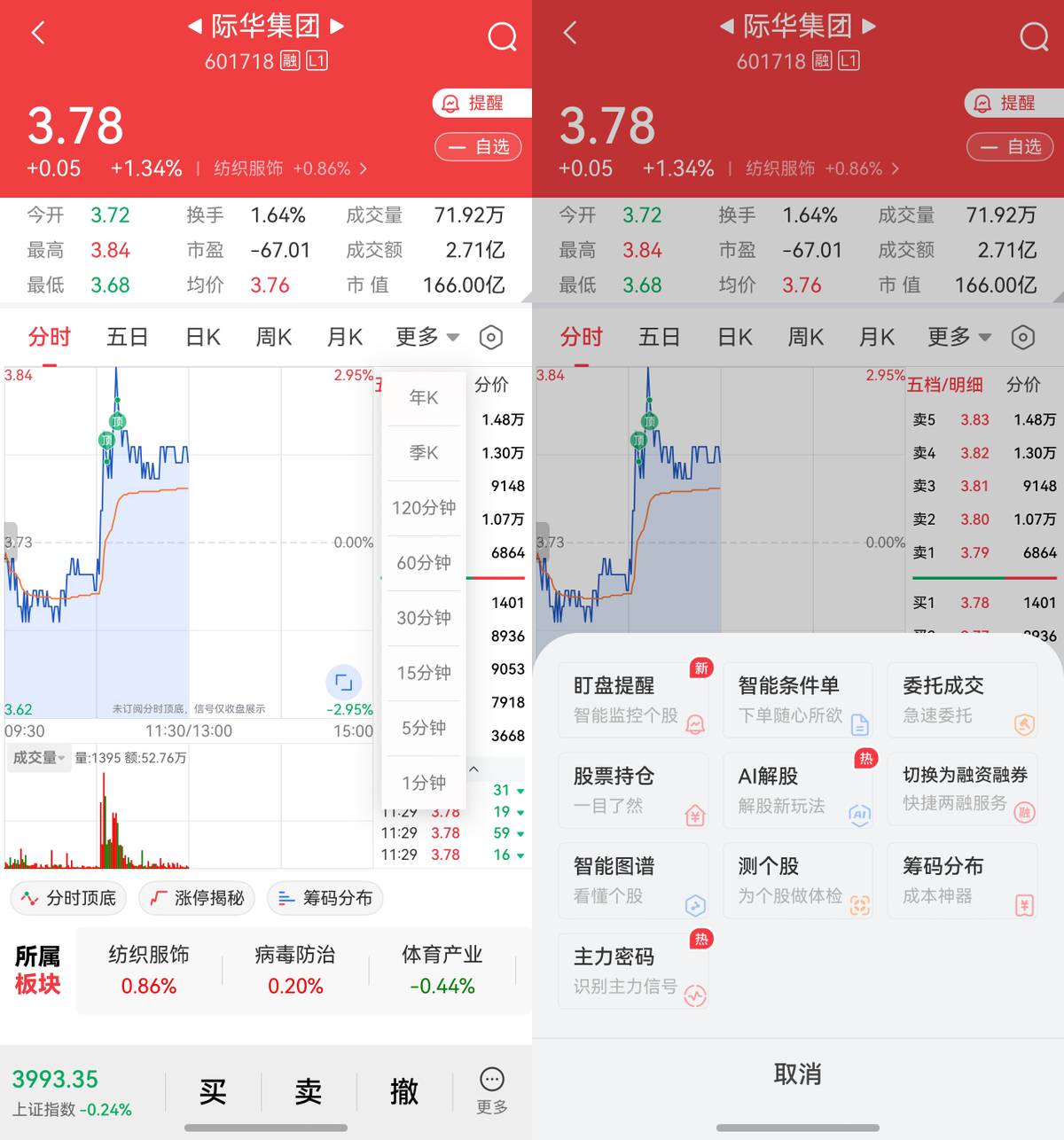 个股详情页里新增历史分时功能,让我能快速回溯任意交易日的股价波动。同时,进入底部“更多”选项,有了“底部掘金”、“涨停揭秘”这些功能模块的加入,资金的流动趋势,一目了然。这些专业分析工具的完善太及时了!