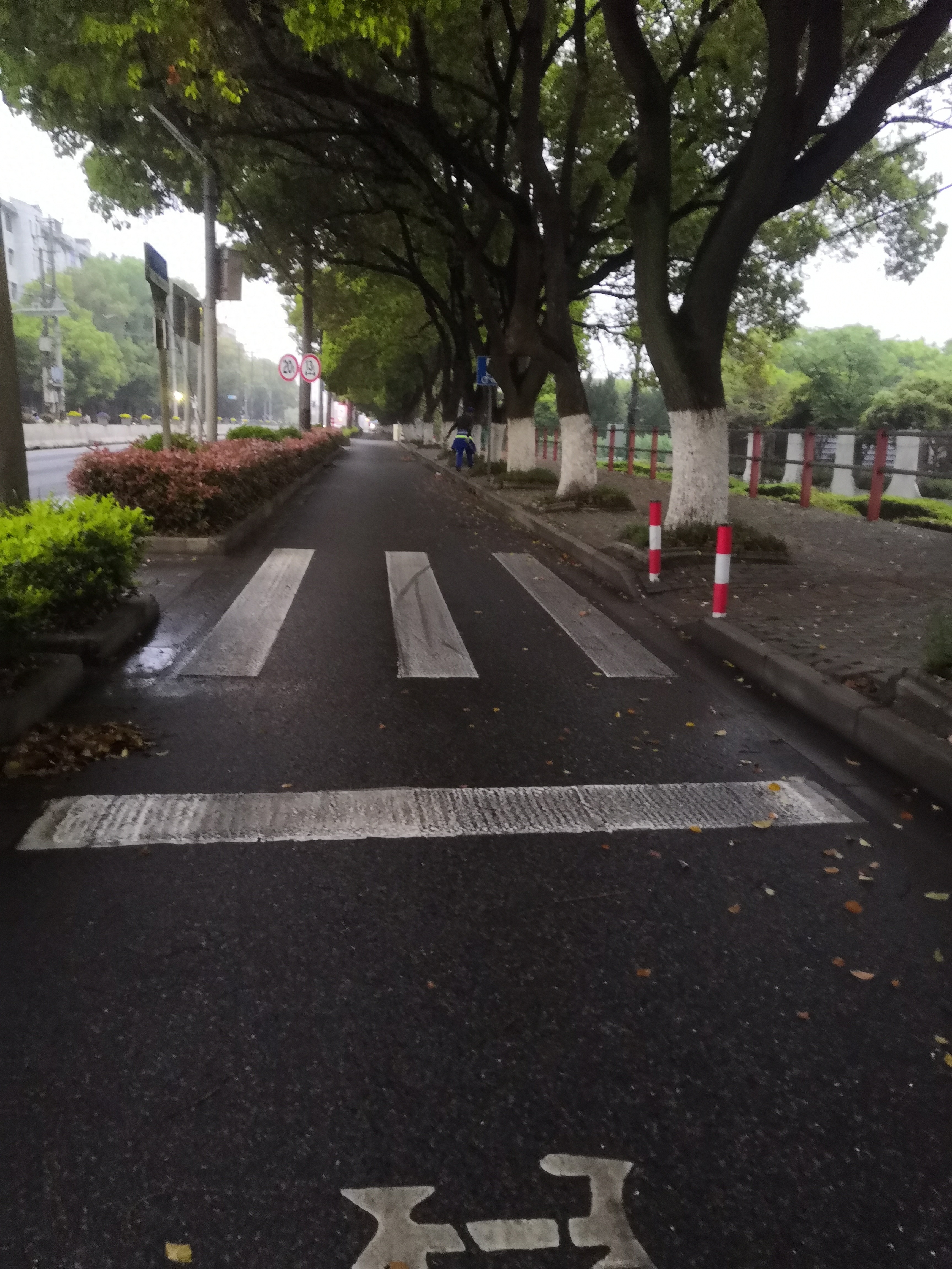 骑车走在街道马路上,环卫工人挽起袖子,脱掉外衣,露出因劳作而微微泛红的手臂。细雨打湿了地面,也打湿了那些调皮的黄色落叶,它们紧紧地贴在路面上,像是不肯轻易服从的“顽皮孩子”,任凭环卫工人怎么使唤,就是不肯起来。