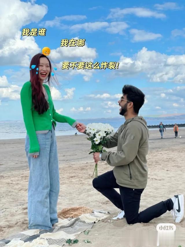 抢镜的外国人很多,直接下跪的第一次见,笑死了,第一次被单膝跪地,在异国他乡的海滩上,还是个陌生人。