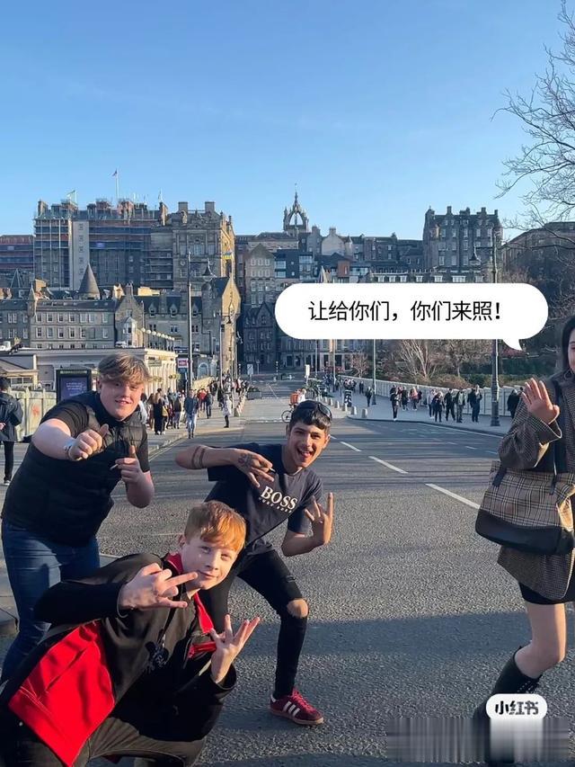 在伦敦一条无人街道上,美美的摆拍,突然遇到一群主动入镜的路人,被迫合照,真的哭笑不得。