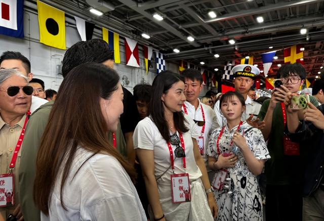 另外,“剑后”江旻憓也现身参观山东舰,她的天真笑容令人如沐春风,走到哪里都感受到青春活力。