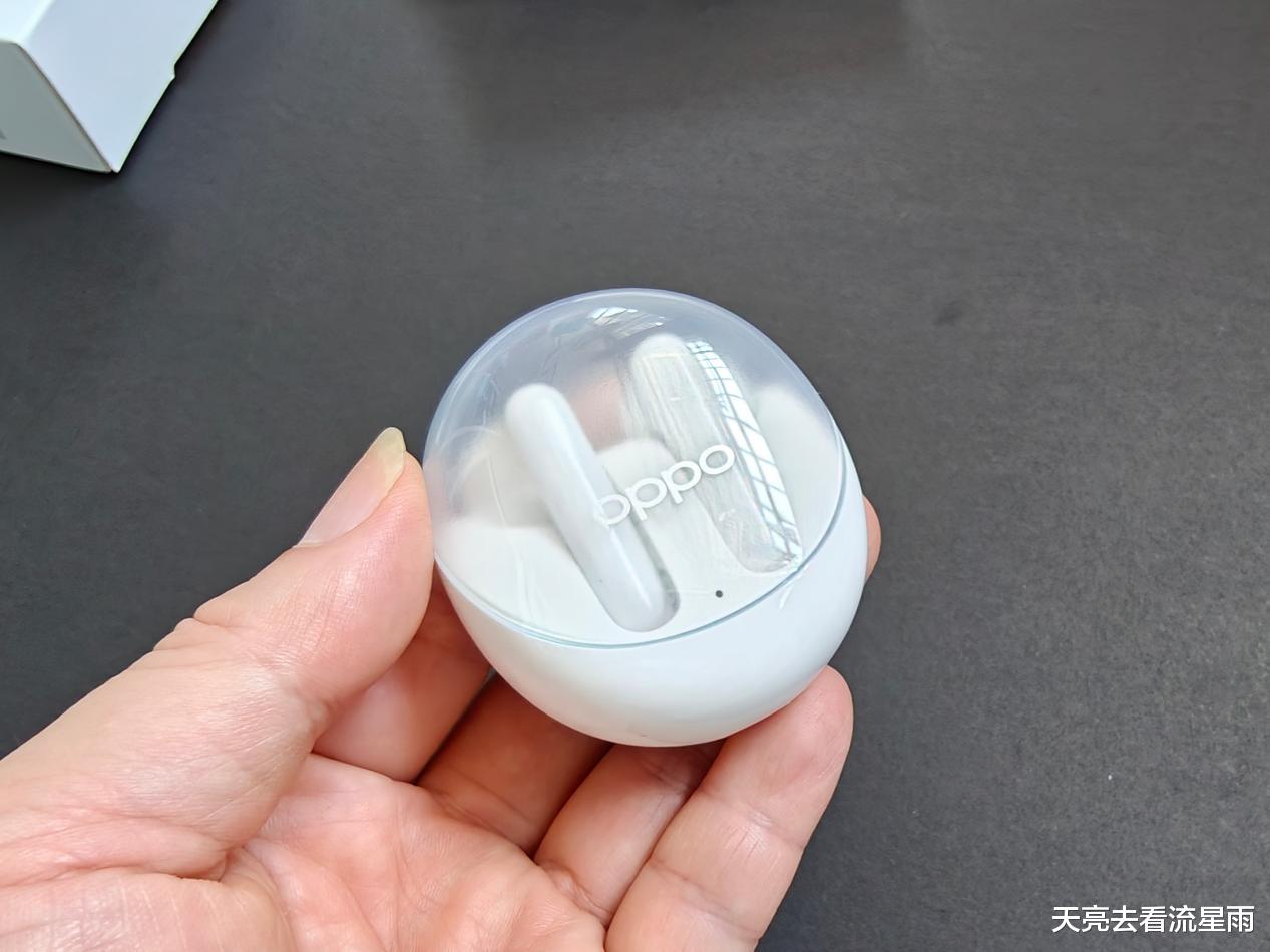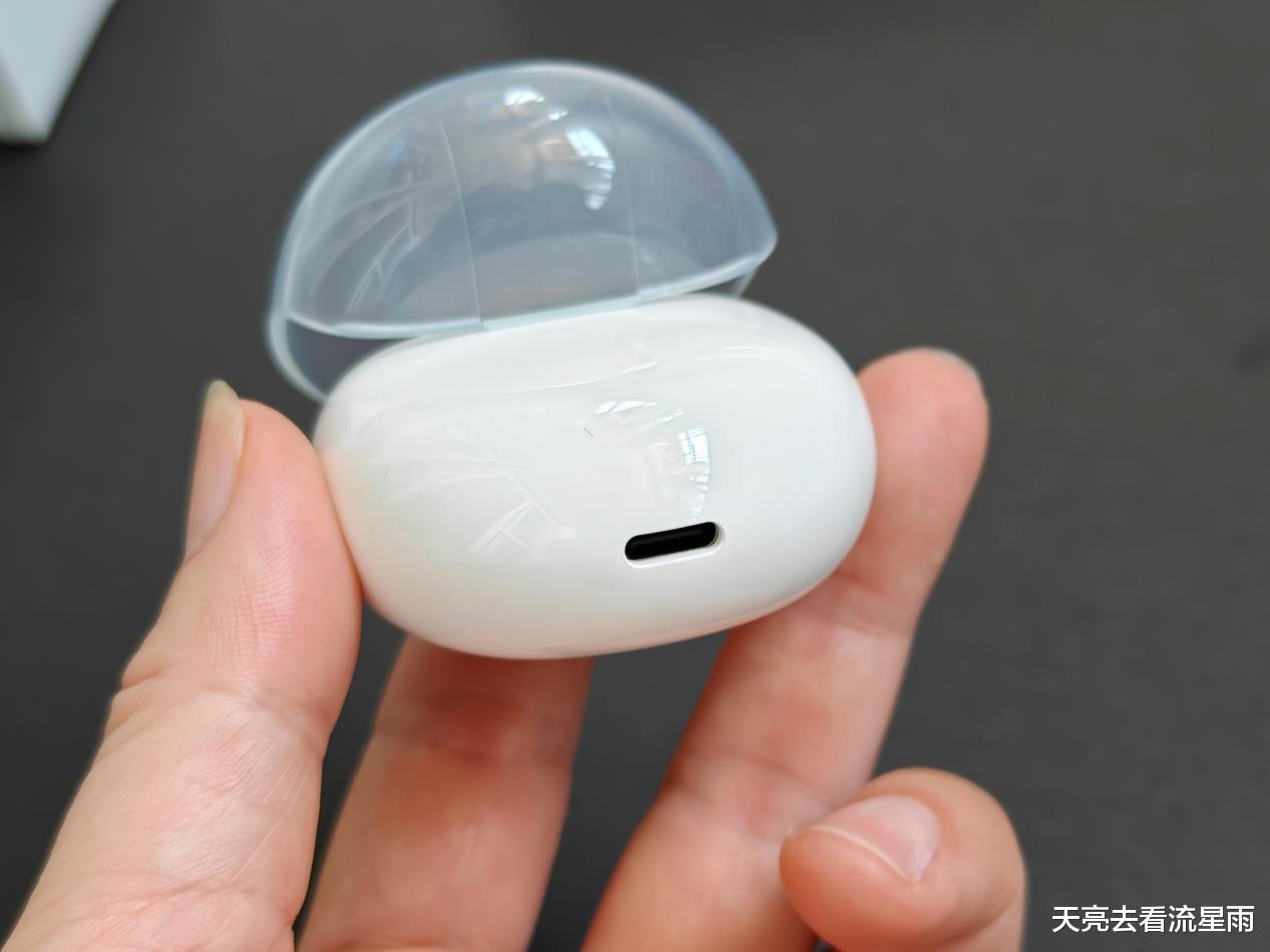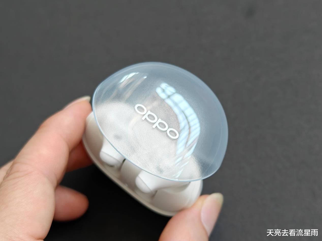 OPPO Enco Air3充电仓采用了半透明果冻风格设计,我手头这款白色看起来也较为普通,这款耳机另有一种淡紫色配色看起来更有风格一些。整个充电仓外观圆润、小巧轻便、握持舒适、开合方便。