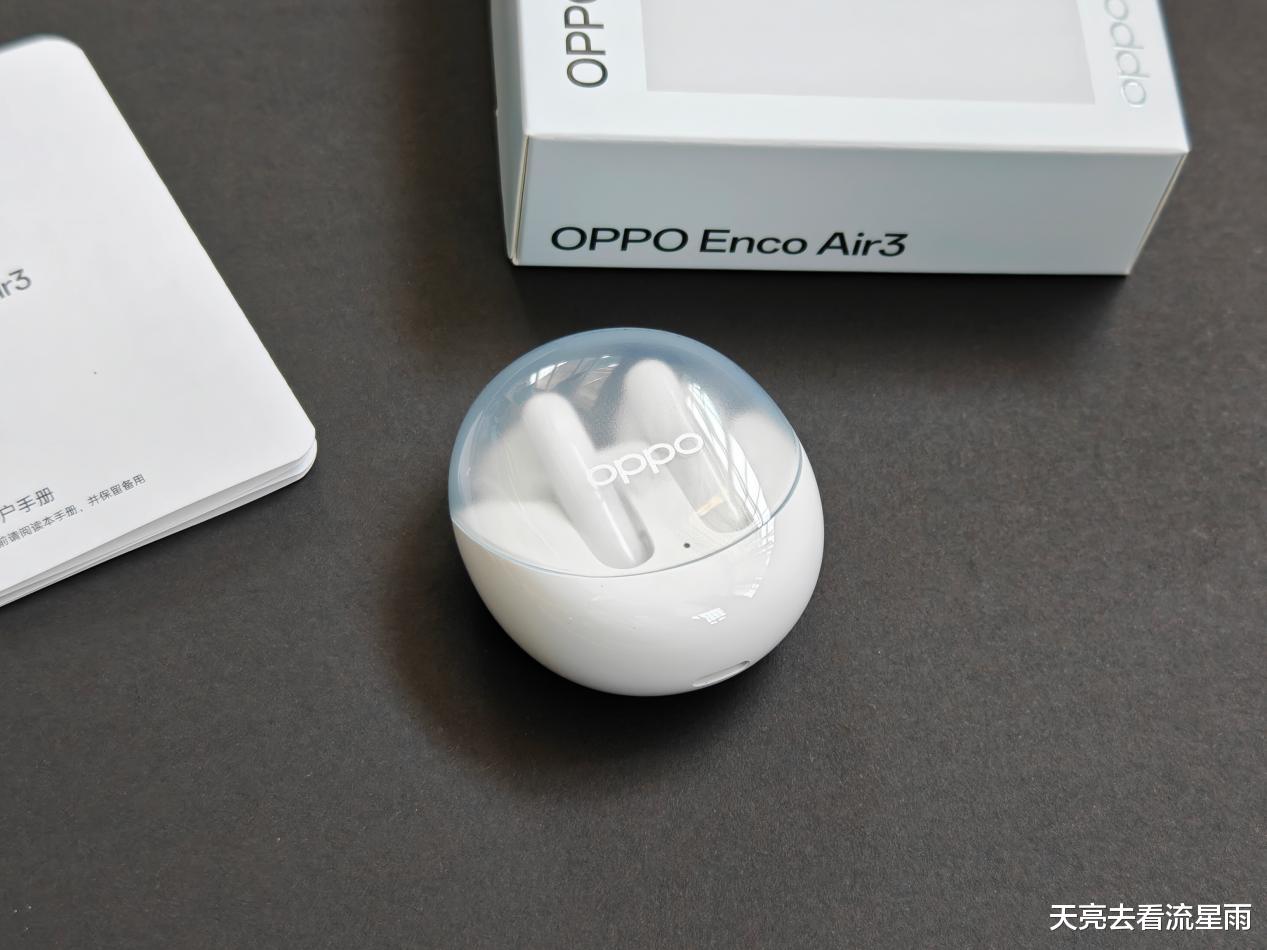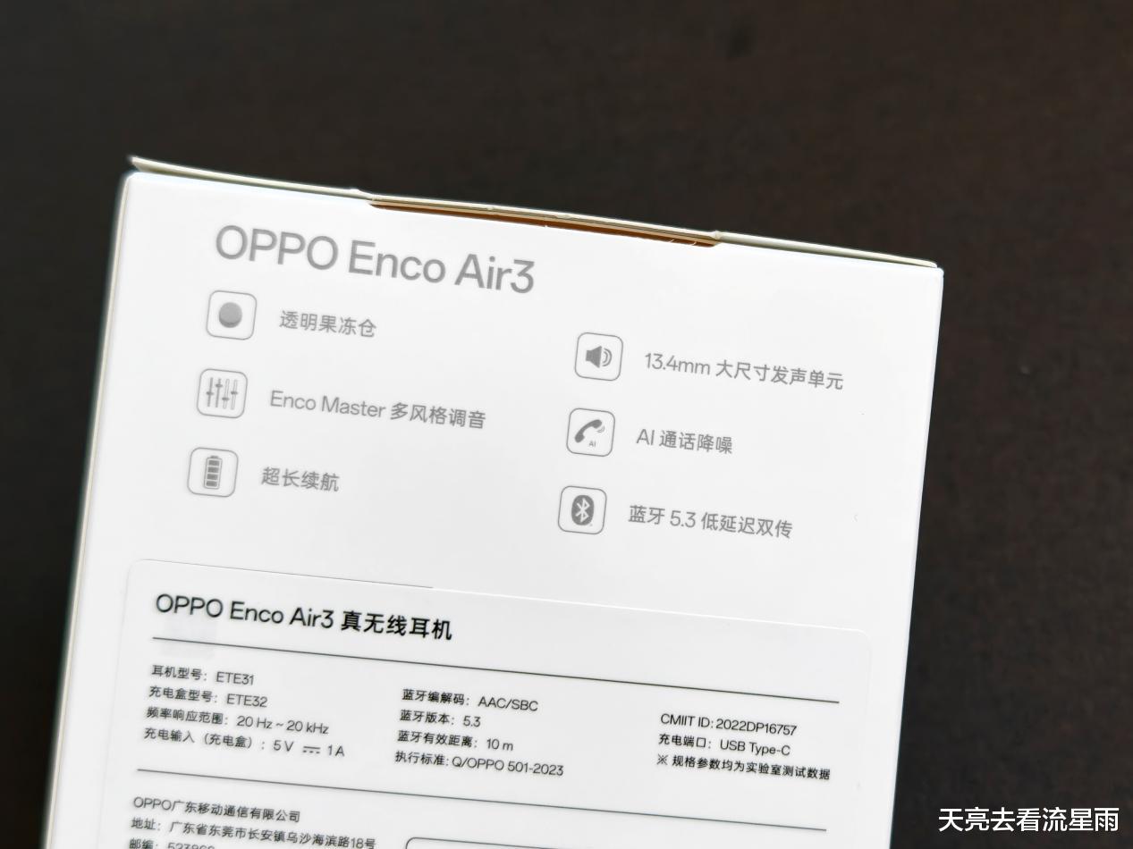 这个OPPO Enco Air3是买OPPO Find X8 Ultra手机时送的赠品,官网翻了下已经下架,参考下新品估计也就百元档的价位。耳机小方盒包装,正面印有产品图、型号,背面有一些主要参数、信息等。包装盒内仅有耳机、充电仓和一份用户手册,没有配备常见耳机会附带的充电线,出于环保考虑吧,现在大部分用户手头也不差这一根充电线。