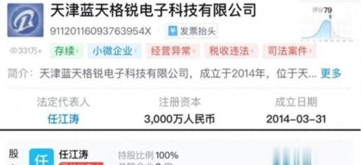 2014年3月份的时候,她跑到了天津,开办了一家名为天津蓝天格锐电子科技的公司,宣称是从事电子产业的公司。