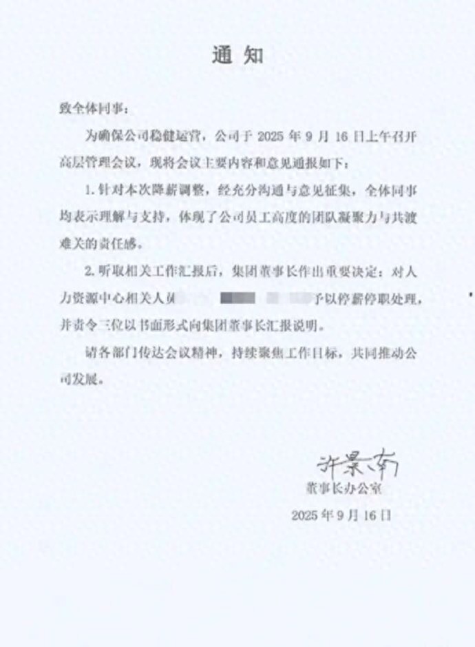 公司的降薪通知表示降薪一事经过充分沟通和意见征集。但多位受访员工表示,发薪日前四天才开会得知降薪,会后无正式文件和一对一沟通。