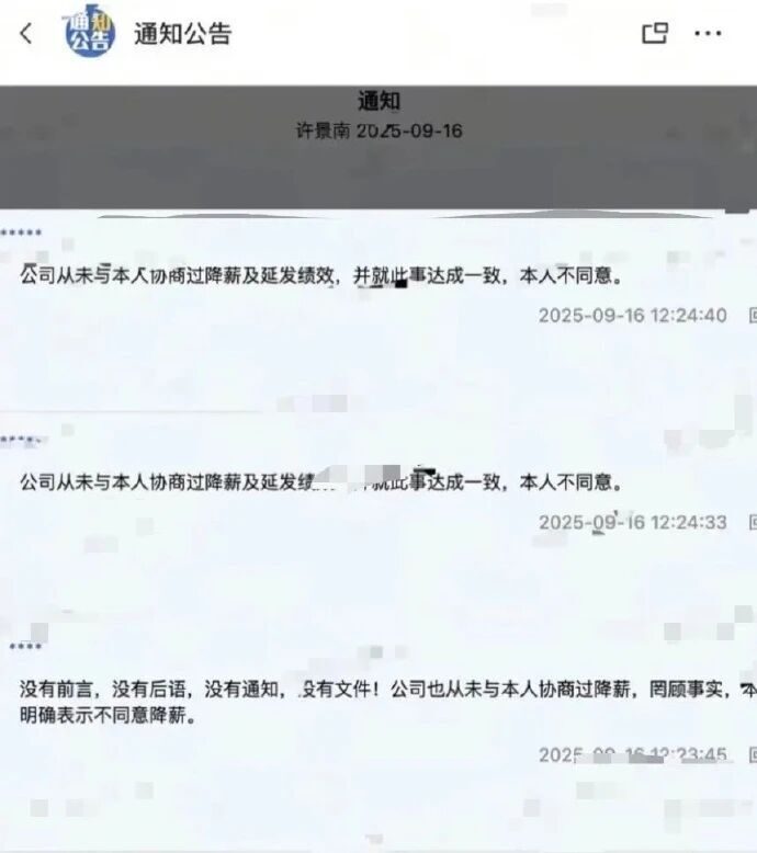 针对低收入员工,许景南强调:“如果工资低于3000元,我们会补到3000元,不影响他们的生活和工作,给他们再一次机会,鼓励他们去努力发扬公司精神,主动性地去开展工作。”他同时指出,绩效奖金制度仍将保留,整体降薪幅度还不到10%,相关决议内容已向工会和公安备案。