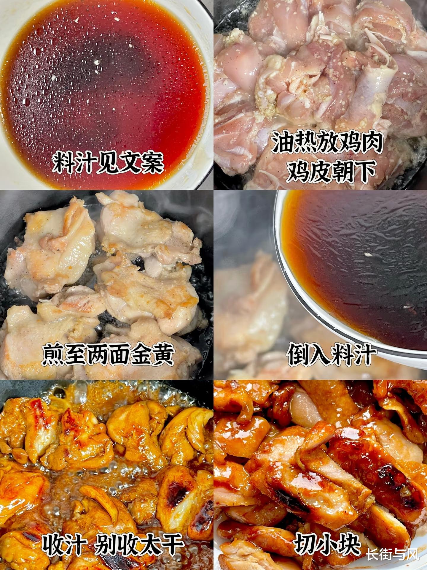 当蜜汁调料开始变得浓稠时,转小火,继续炖煮,直到汁液收得差不多,但不要收得太干,留一些汁液可以让鸡肉更加湿润。